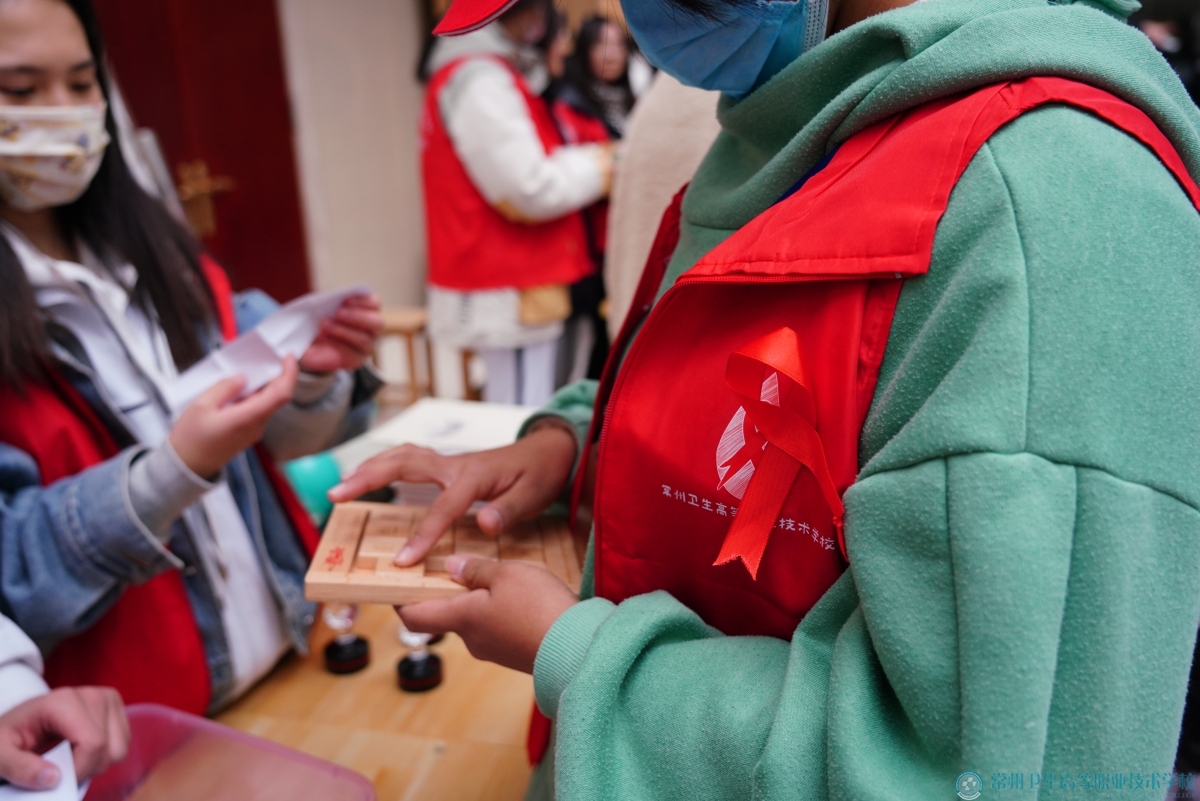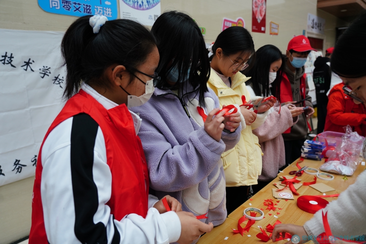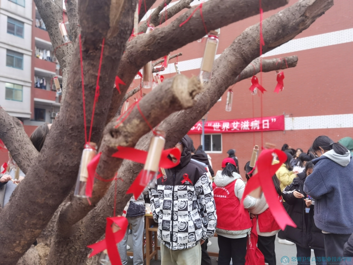 学校在宿舍区和E楼大厅分别举办了世界艾滋病日主题活动。活动现场内容丰富,共设置了九个项目,吸引了大批学生参与。除了展板展示、宣传资料发放,还设置了手工制作红丝带、禁毒华容道、有奖知识竞答、HIV自检试剂盒的使用学习、小熊“艾”的抱抱、“艾”你“瓶”安等环节。趣味知识竞答的过程中,同学们在轻松欢乐的氛围中学习到防艾知识,“艾”你“瓶”安防艾许愿瓶的出现,更是将现场氛围推向了高潮,同学们纷纷带着对未来的期望,许下美好心愿,许愿树上挂满了许愿瓶,这是对爱的守护和传承。