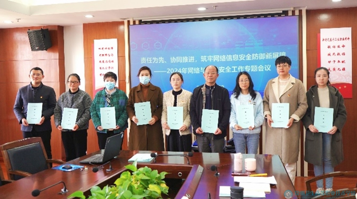 会上,校长蔡正茂向各职能处室下发了2024年网络与信息安全责任书。信息处副处长丁珏解读了《2024年常州卫生高等职业技术学校网络安全工作方案》。