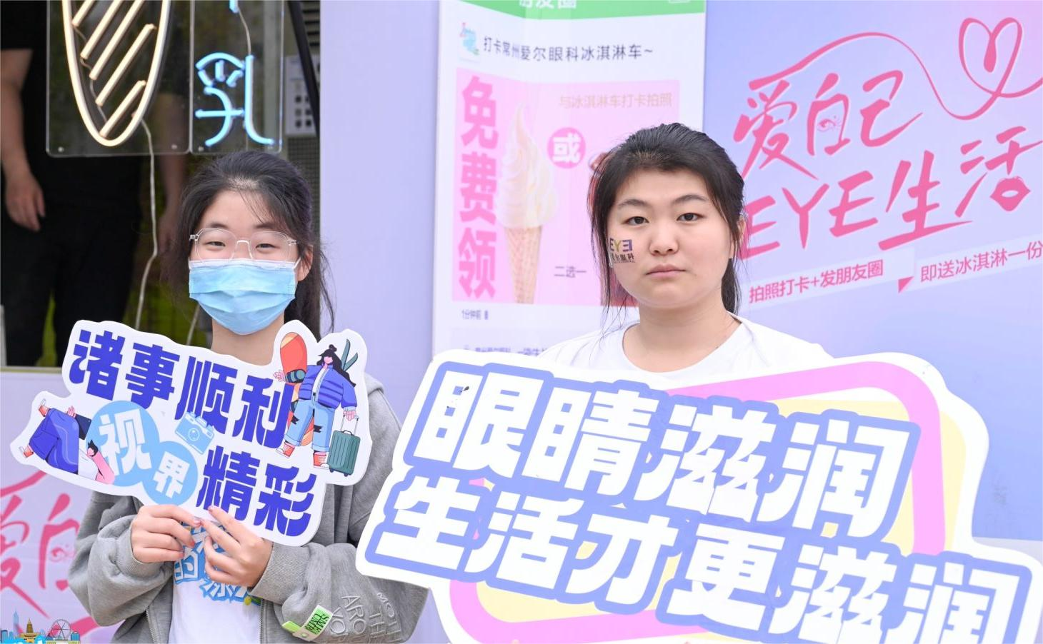 同学们在沿途发放补给饮用水、面包、冰激凌,还利用所学的专业技能知识,帮助参与暴走活动的市民做公益视力筛查,为市民科普眼科小知识,宣传护眼爱眼的重要性。