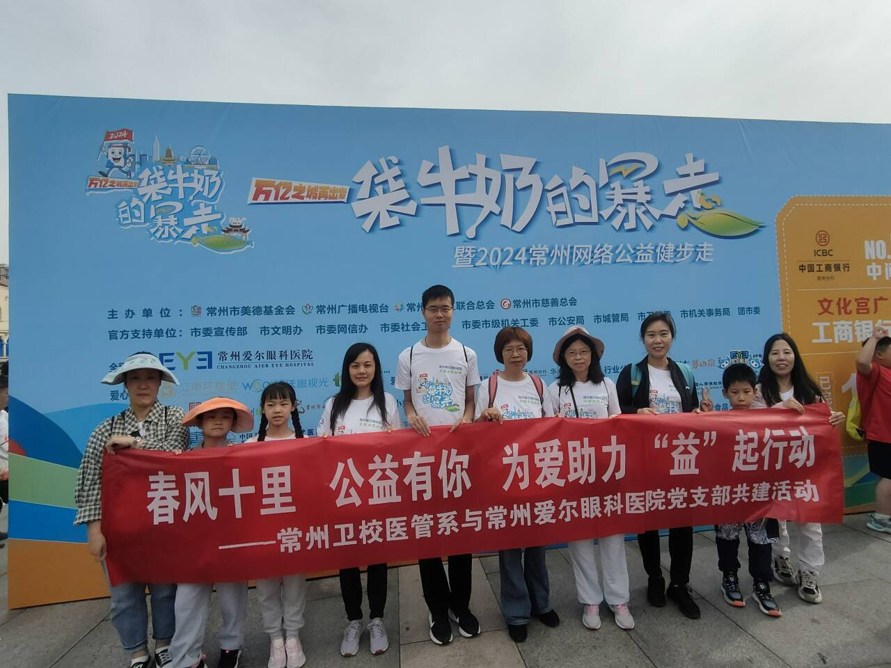 5月12日,医管系党支部与常州爱尔眼科医院党支部开展“春风十里暴走有你为爱助力“益”起同行”共建活动,一起参加常州市第十一届“一袋牛奶的暴走”,通过身体力行的方式,为家庭经济困难的学龄儿童捐赠牛奶。