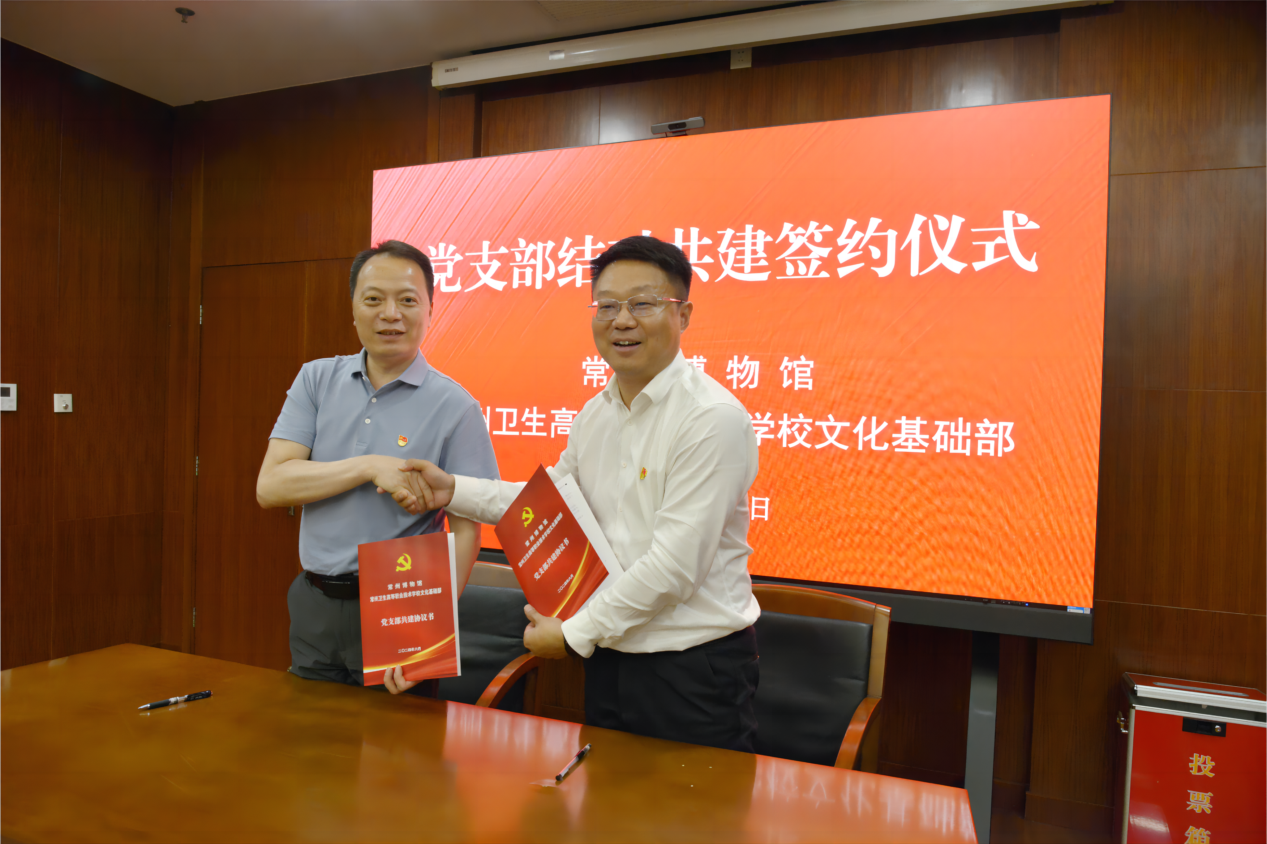 为激发党建活力,创新共建形式,实现跨行业资源共享与优势互补,6月21日下午,学校文化基础部、常州博物馆双方签约,明确开展党支部结对共建。