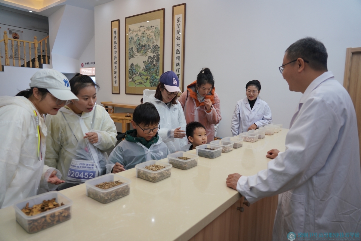 本次活动,学校非遗文化馆被定为2号、6号线路打卡点,吸引了众多参赛选手的目光。走进传统非遗学院,大家通过辨认中药材,了解药性作用,感受到了中医药文化的无穷魅力。