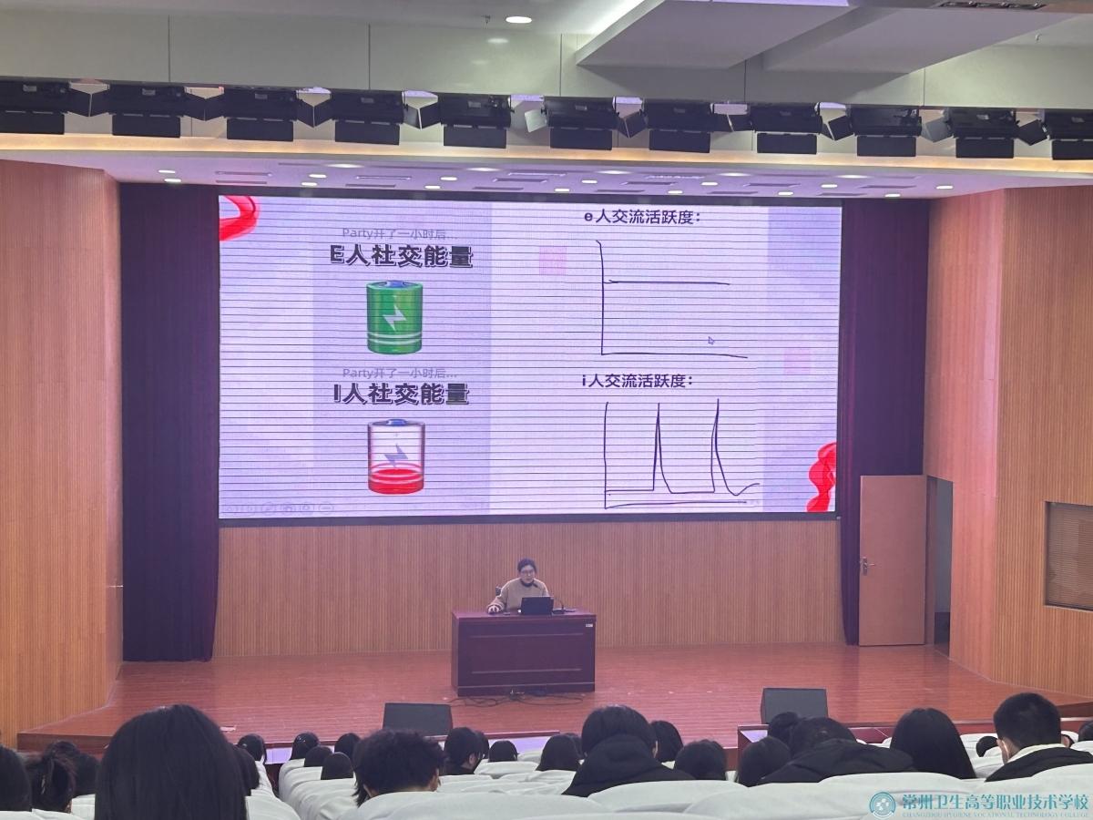 2023年11月22日下午,陆佩佩老师在学术报告厅开设了题为"MBTI人格类型测试之你是哪种人格类型?"的学术讲座,学校近200名学生到场参加。
