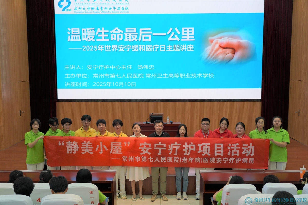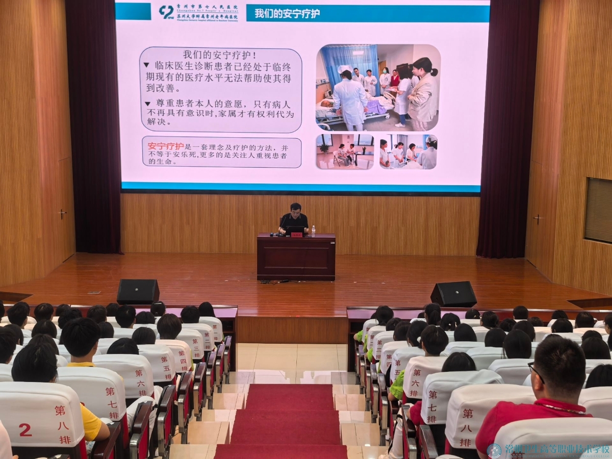 在第21个世界安宁缓和医疗日到来之际,学校邀请常州市第七人民医院安宁疗护中心主任汤伟忠来校作《温暖生命最后一公里》主题讲座。该讲座是学校持续开展的医路讲堂第17讲。学校相关专业师生200人参加。