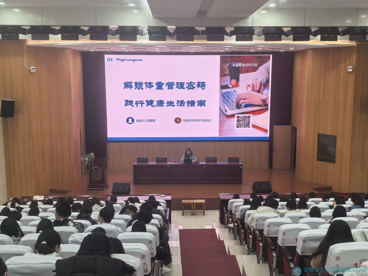 2025年12月9日下午,沈晓燕老师在报告厅开设了题为《解锁体重管理密码践行健康生活指南》的科普讲座,全校近200名师生到场聆听。