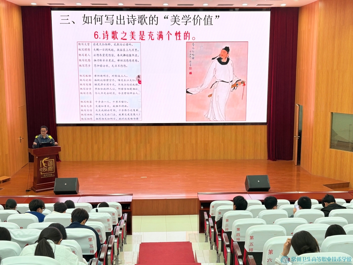 首先,吕老师从"何为美"切入,解析了"美"的文字本源,指出美兼具主观感受与精神内核;接着,他结合海子《九月》、赵丽华诗作等,对比阐释诗歌美学价值与情绪价值的差异,强调诗歌之美非科学可度量,兼具浪漫想象与现实情怀,是个性与情感的凝练表达;然后,吕老师以屈原、李白、柳永、苏轼等经典诗词为例,解读诗歌的情感张力与艺术魅力,分享创作要点,引导大家用诗意视角观照生活;最后,吕老师以自创诗歌《路》结尾,引导大家在漫漫人生路上,可以书为灯、以书为友、以书为路,在文字中汲取力量。
