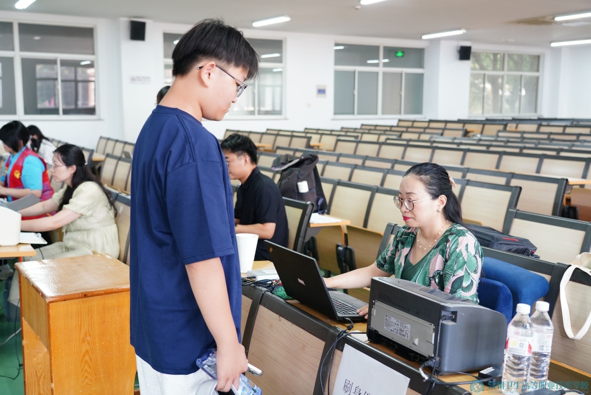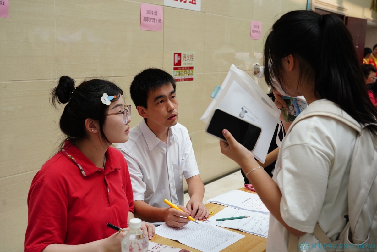 班主任在各班报到点迎接前来办理入学手续的新生。在班主任耐心引导下,新生自主完成信息核对、领取校园卡、宿舍钥匙等报到流程。