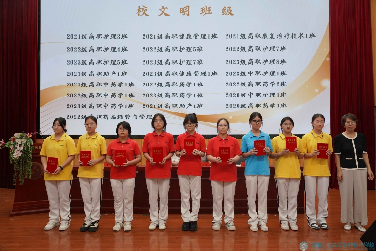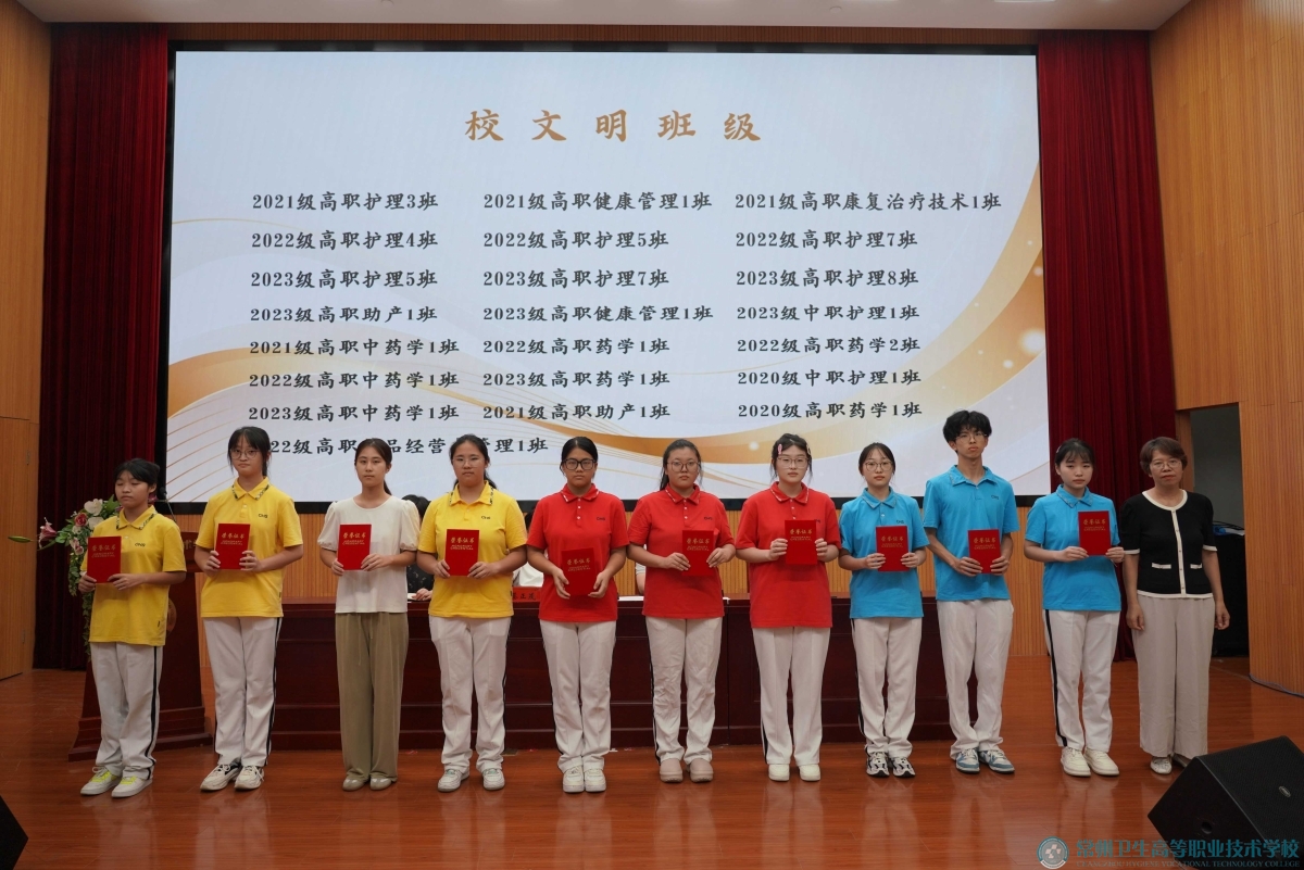 会上,校领导宣读2023-2024学年第二学期先进班集体、优秀个人,省市"三创"优秀学生、优秀学生干部、先进班集体,2024级优秀新生荣誉名单,并颁奖。