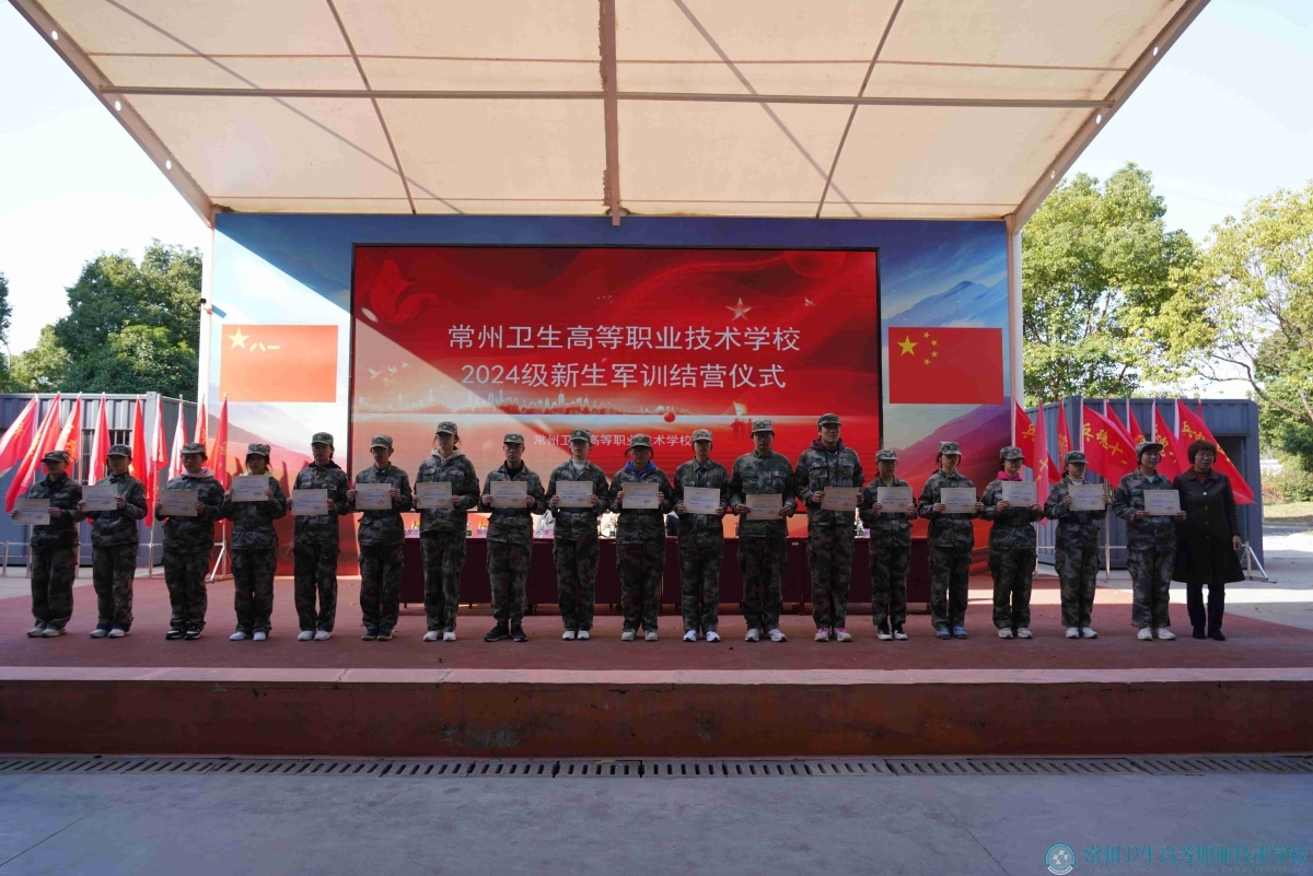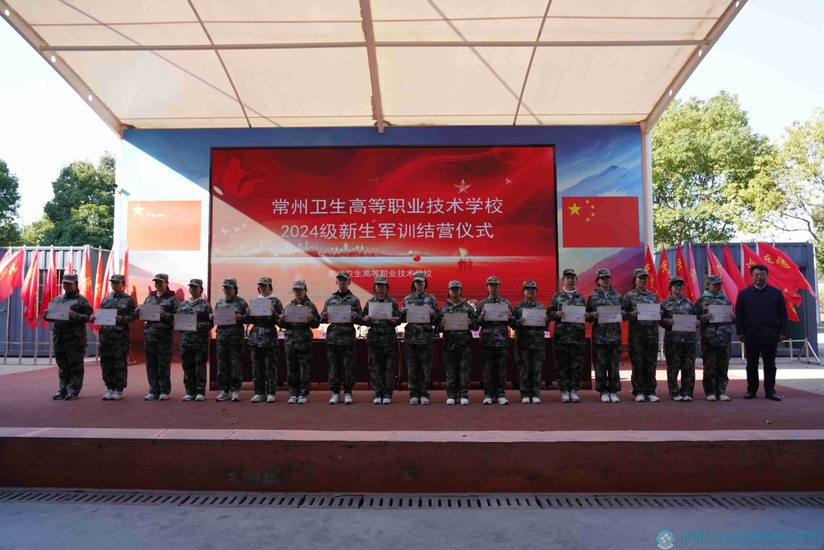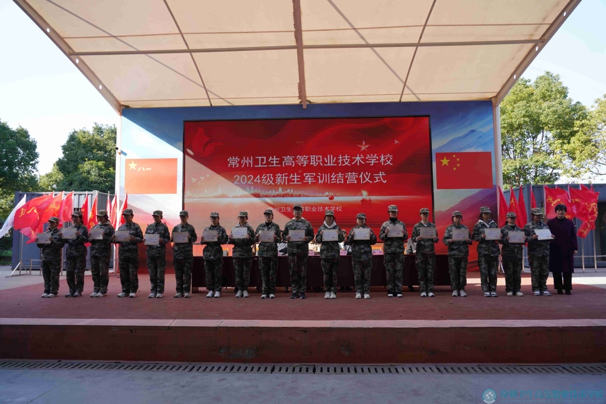 27日上午,天宁区人民武装部上校部长苏永进、全体校领导出席结营仪式。校长蔡正茂向天宁区人武部、军训基地赠送锦旗。副校长陈玲宣读了表彰决定。学生展示了军训成果。