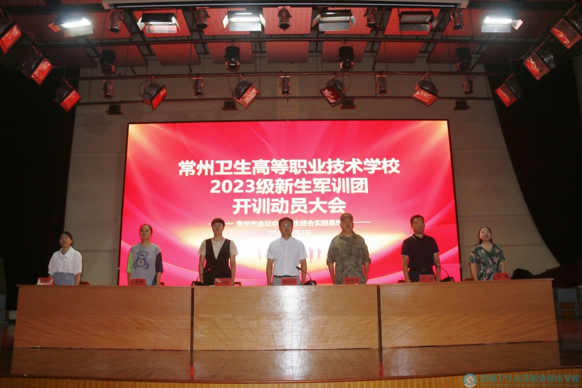 开营仪式在庄严的国歌声中拉开帷幕。黄义均作军训训话并宣布开训。他对全体新生加入常州卫校这个大家庭表示热烈欢迎,对承担本次军训工作的基地负责人和全体教官表示衷心的感谢。他希望全体新生做到三点:一是严明纪律,接受军训考验,做到不怕苦,不怕流汗,用艰苦的训练和辛勤的汗水换取军训的丰硕成果;二是积极参与,追求团队合作,树立团队意识,加强团队合作,形成团队力量,共建团队精神;三是勇于拼搏,增强责任担当,以军人的精神激励自己,吃苦耐劳,敢打敢拼,以饱满的热情、旺盛的斗志开启高质量的学校学习生活。